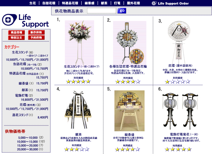 施行会場の状況によってはお選び頂けない供物もありますので注文時に必ずご確認下さい。
